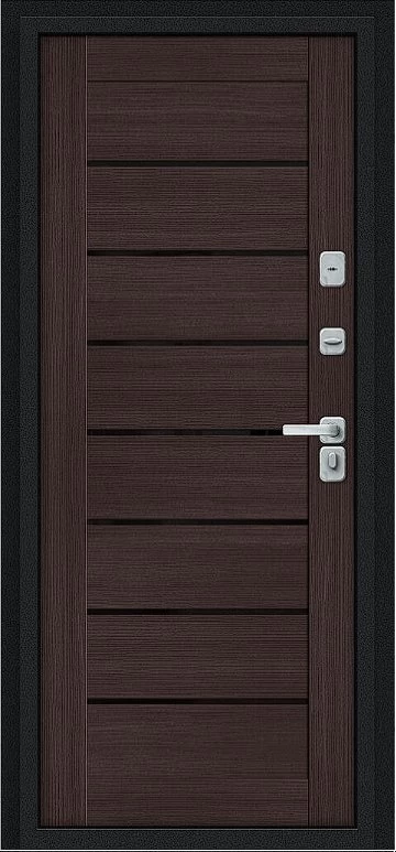 Дизайнерская входная Дверь Браво Thermo Техно Д2/BChrome Букле черное/Wenge Melinga класса Люкс с несколькими листами стали, звукоизоляцией и теплоизоляцией. Утепленный короб и полотно защитят от сквозняков и шумов. Модель не только надежная, комфортная, защищенная и высочайшего качества, но и очень красивая! Будет отлично сочетаться с интерьером дома, квартиры или офиса. Сейчас действует выгодное предложение по цене: 58 565 руб.